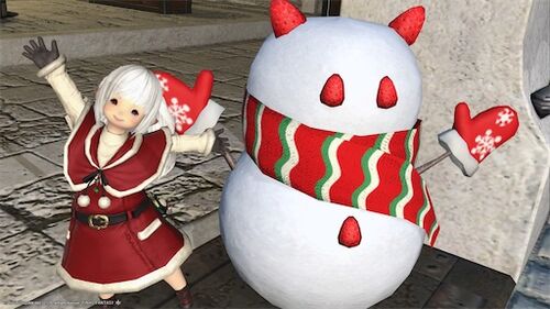 おはようございます〜 雪遊び大好き〜ミーです〜 猫耳雪だるまさんを探します〜 去年はリムサ・ロミンサの猫耳雪だるまだけ 見つけることが出来なかったみたいなので リムサ・ロミンサの猫耳雪だるまさんから 探します〜 レストランで〜 今年もいちご雪だる…